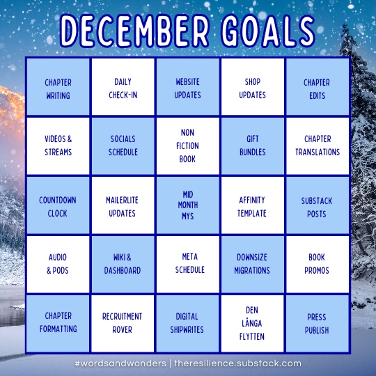 Decemberbrickan har 25 rutor med sånt som ska göras. Vissa saker som måste göras varje vecka medan andra är delar i ett större projekt. Min favorit är mittenbrickan: mitt-i-månaden-mys. 🤭